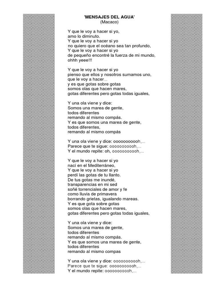 Mensajes Del Agua Letra Macaco Cancion De Musica Lyrics