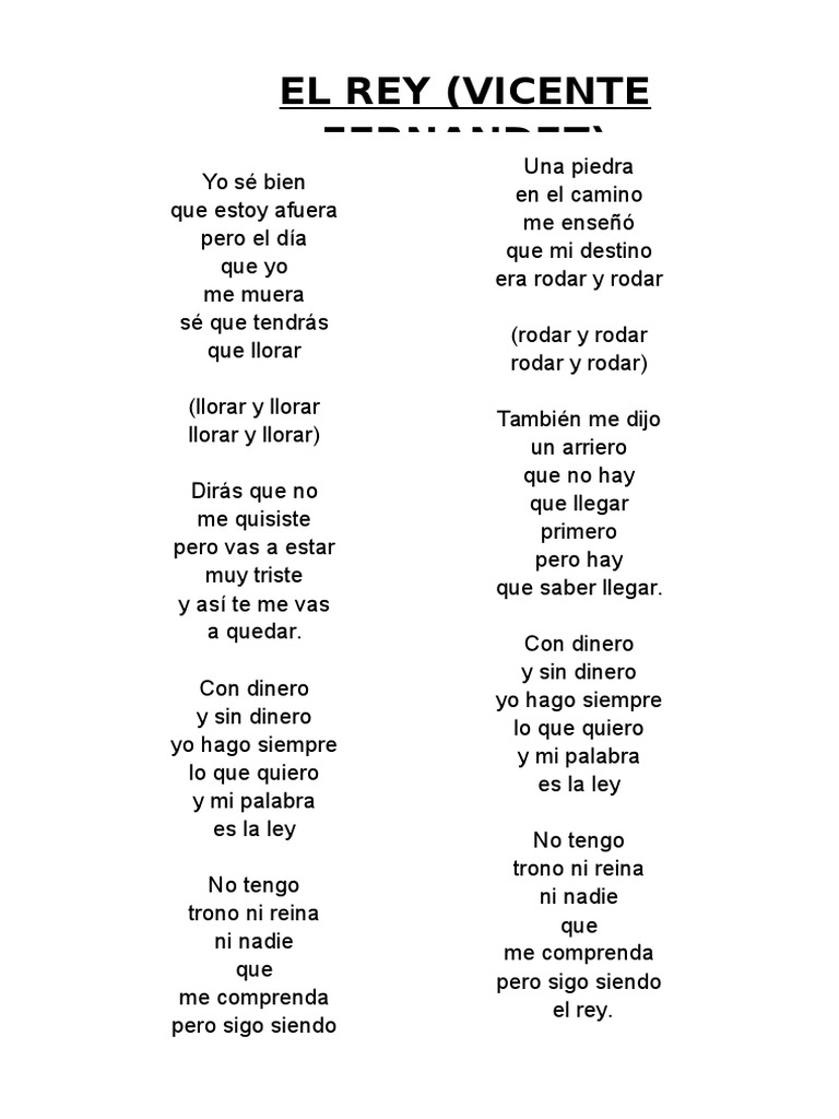 O Scribd o maior site social de leitura e publicao do mundo. Con dinero y sin dinero Yo hago siempre lo que quiero Y mi palabra es la ley No tengo trono ni reina Ni nadie que me comprenda Pero sigo siendo el rey.